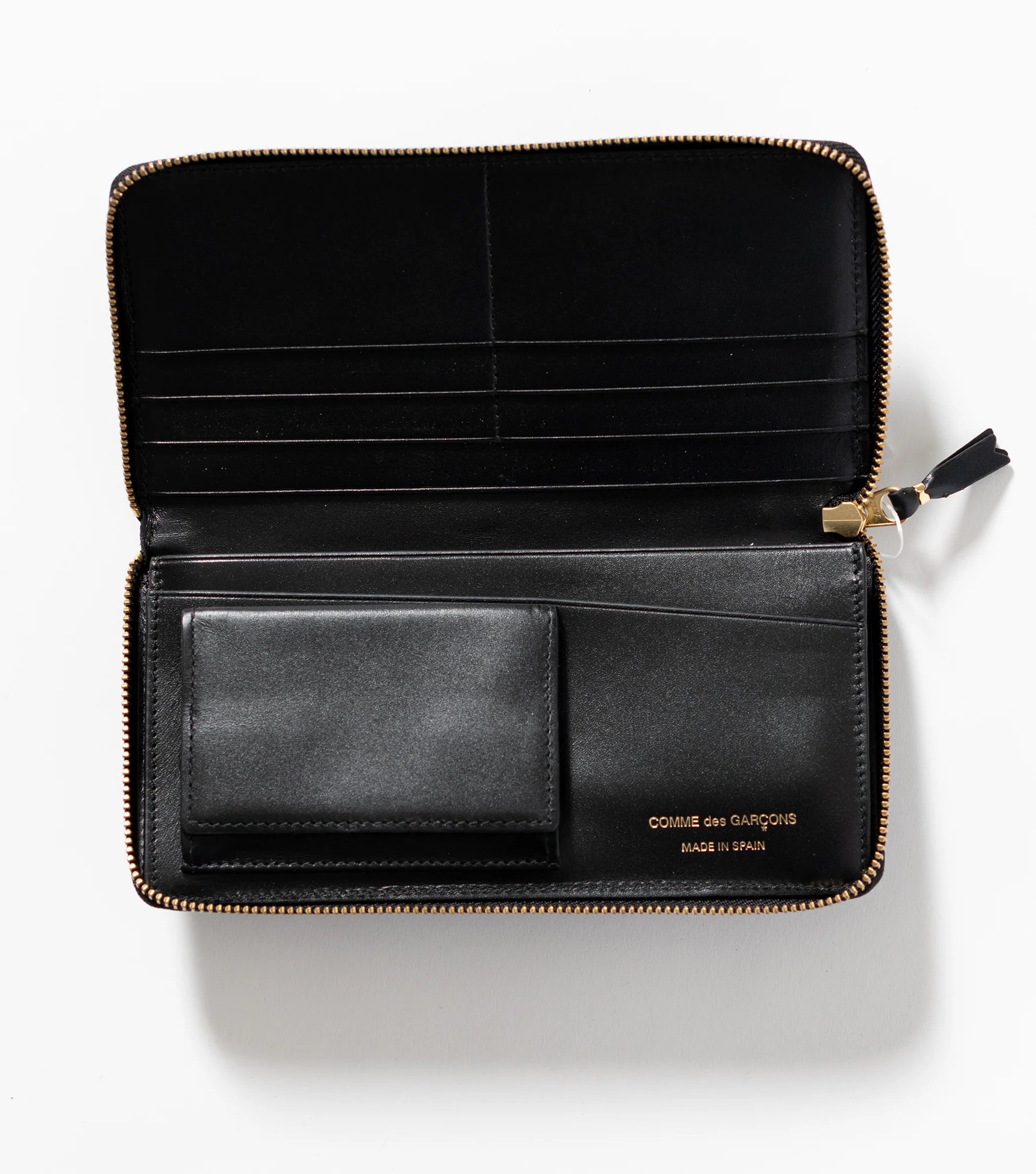 Comme Des Garçons Full Wallet Huge Logo. Full zip closure, large bill compartment, multiple card slots. Approximate dimensions when closed: 8" x 4".