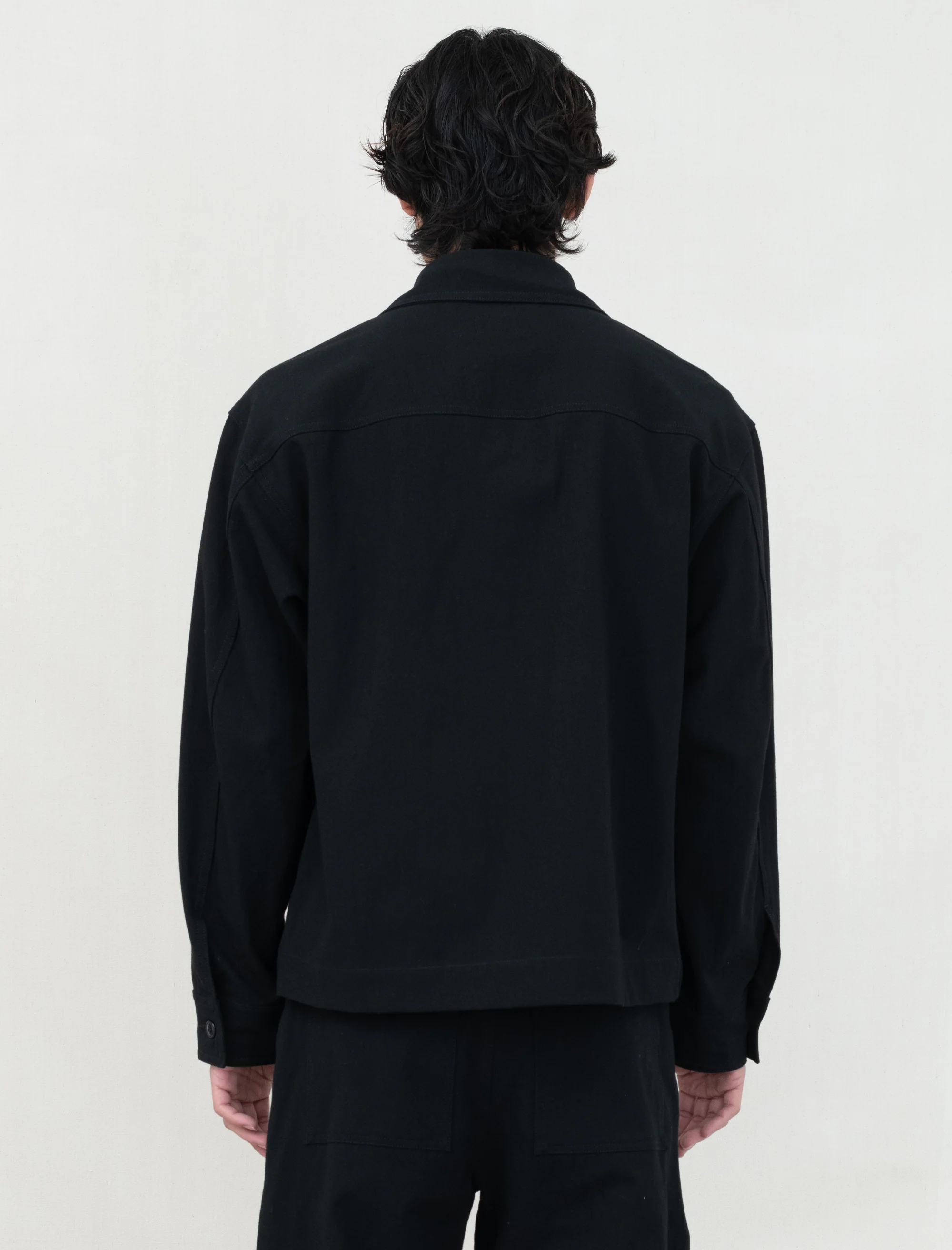 The LUX is a simple yet sophisticated workwear jacket with a wide cropped fit and a unique pocket design. It is made of soft and slub cotton oxford.